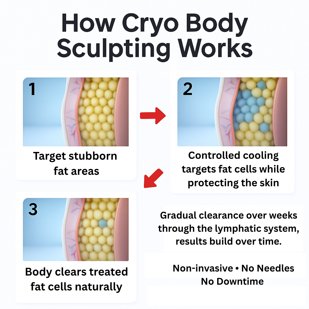 Cryo body sculpting is non-invasive and uses controlled cooling to support body contouring and inch-reduction goals in targeted areas.